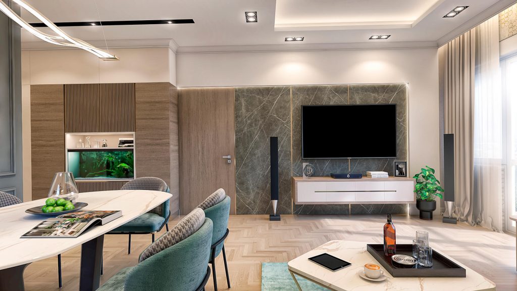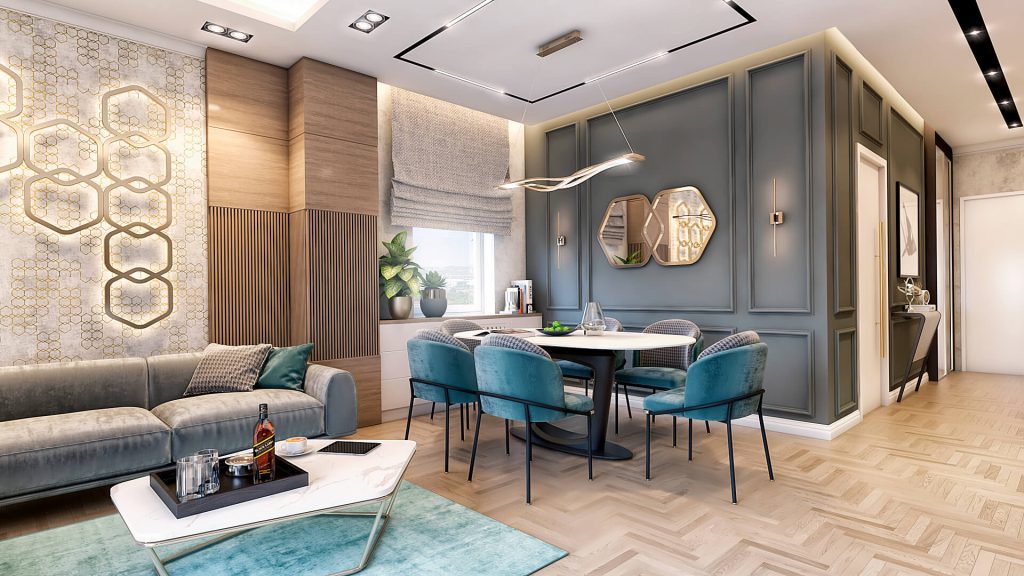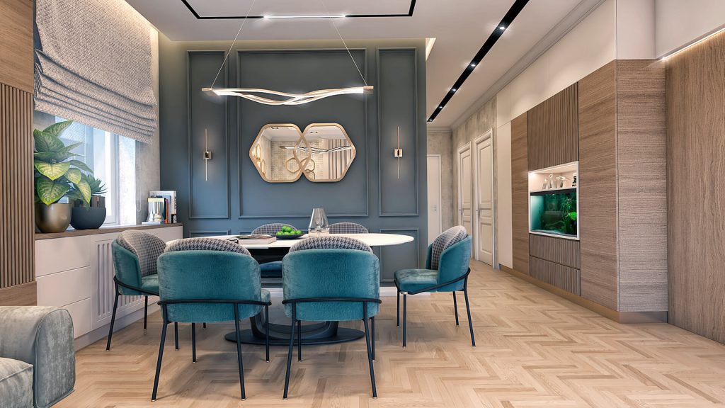The redesign of the living space of 150 m2 in the spirit of modern interior, with the contrast of dark and light tones as well as baroque details, received a note of luxury in every segment of the project. The audacity and courage of investors awakened in us undiscovered creations of combining different segments in one space.